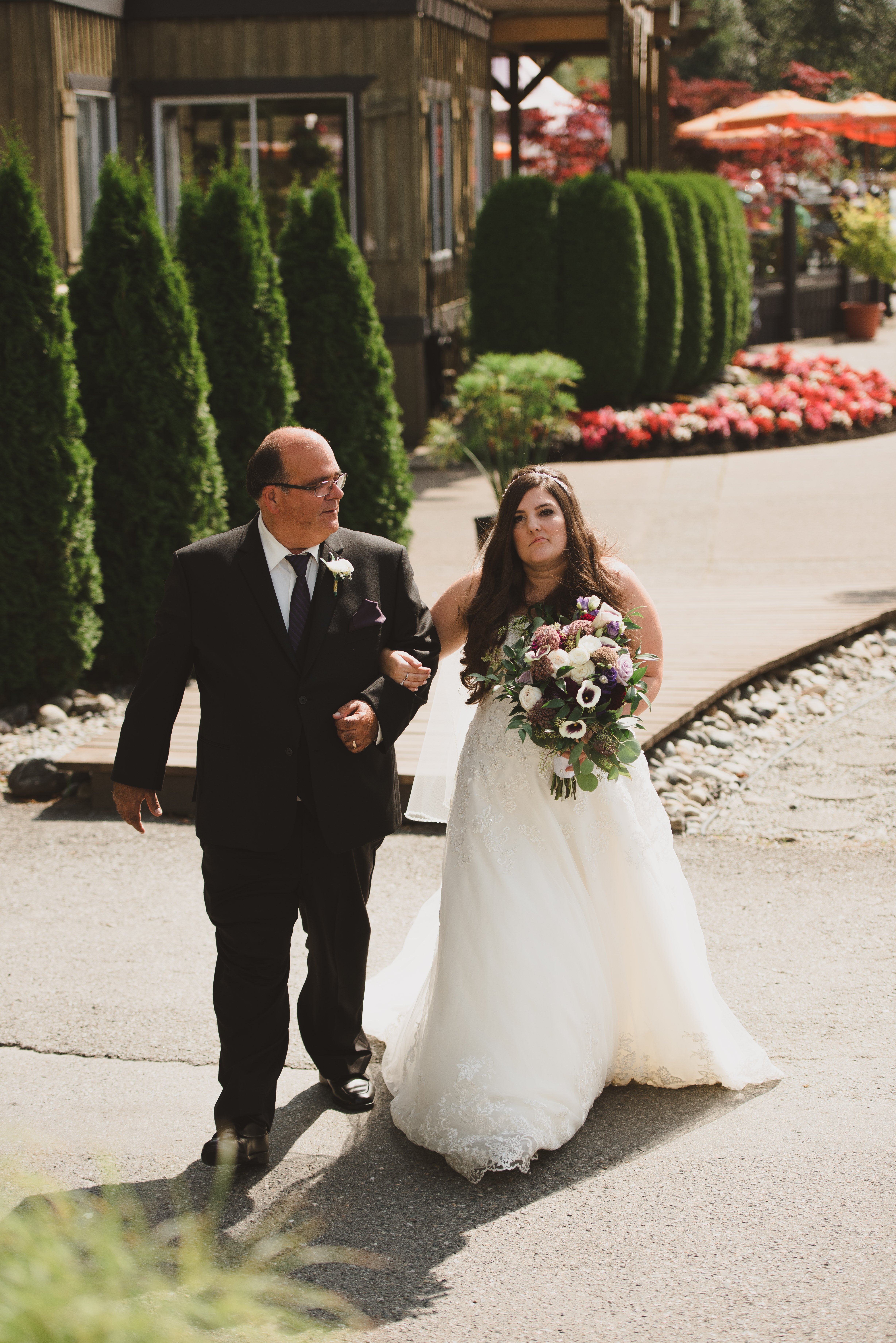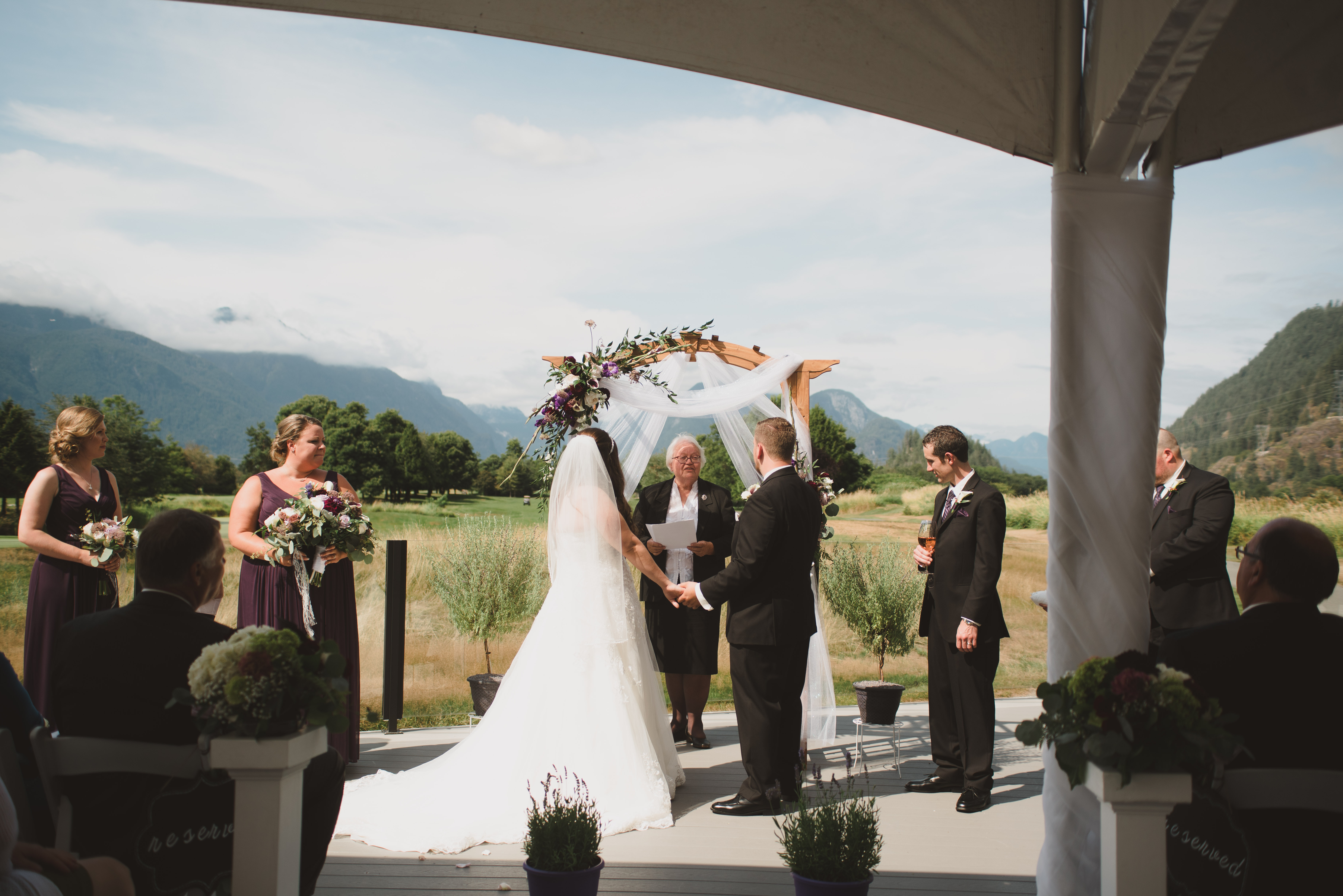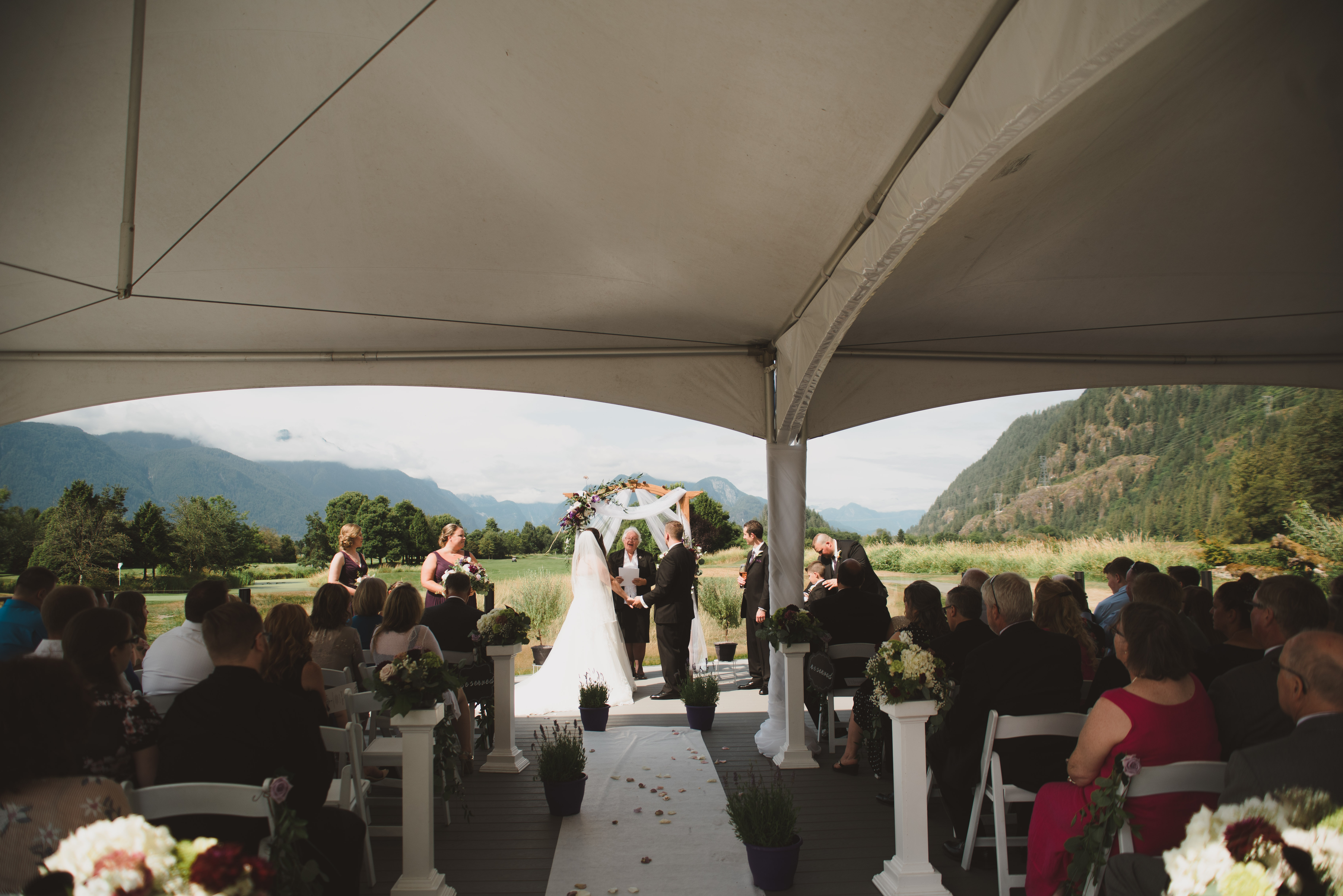 One of my favourite features of this venue is their ceremony space. It has a really cute little bridge that leads to the ceremony site. It’s covered so it’s cool, or protected if it rains. It’s railings are all glass so your view of the mountain range is free and clear.