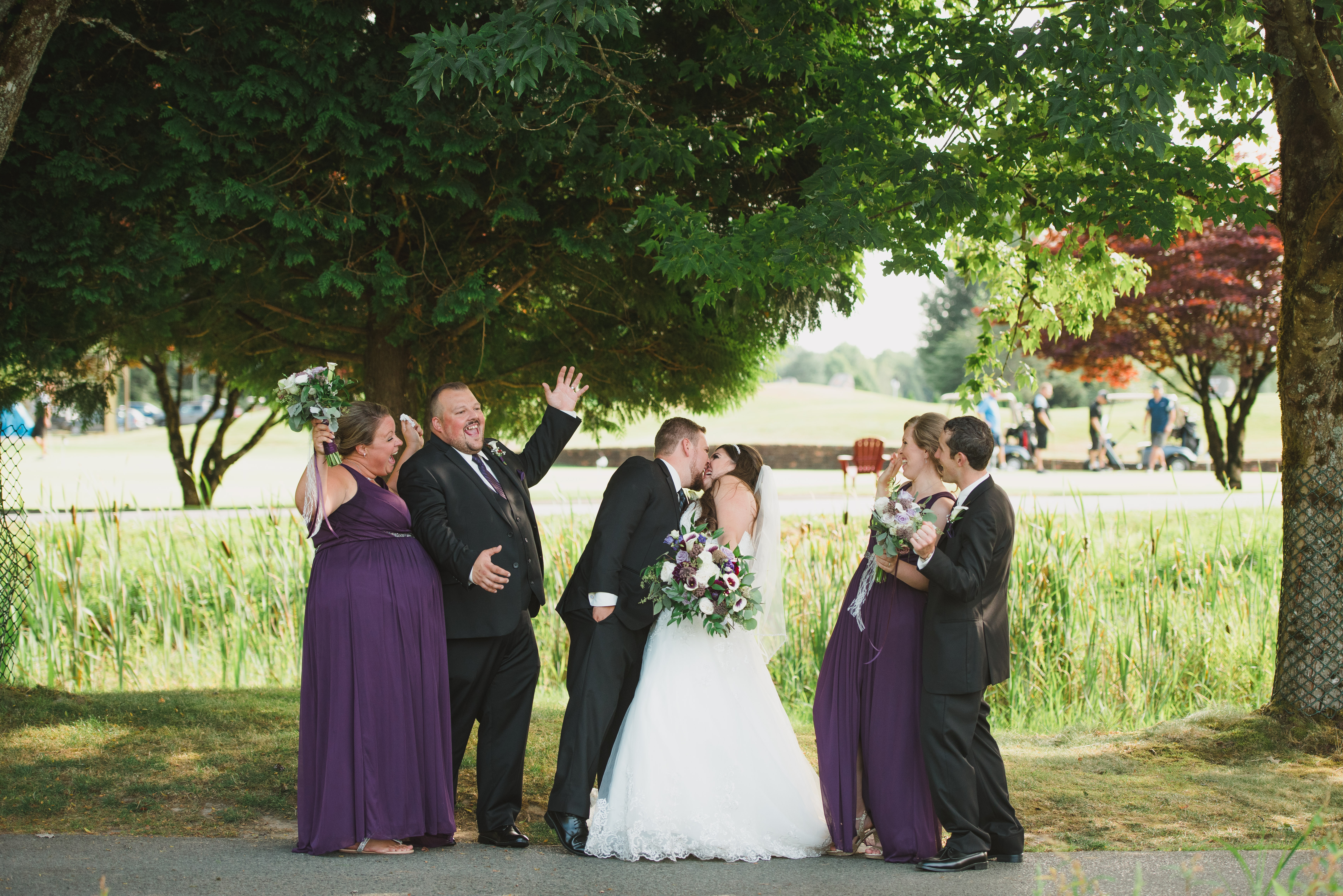 The golf course has some fabulous spots for photographs. Tree’s along the cart path give you shade, and the driveway coming into the golf club is lined with beautiful trees that, especially in the fall create a gorgeous backdrop. Pitt lake is also not too far away and is a great location for pre wedding photos or first looks!