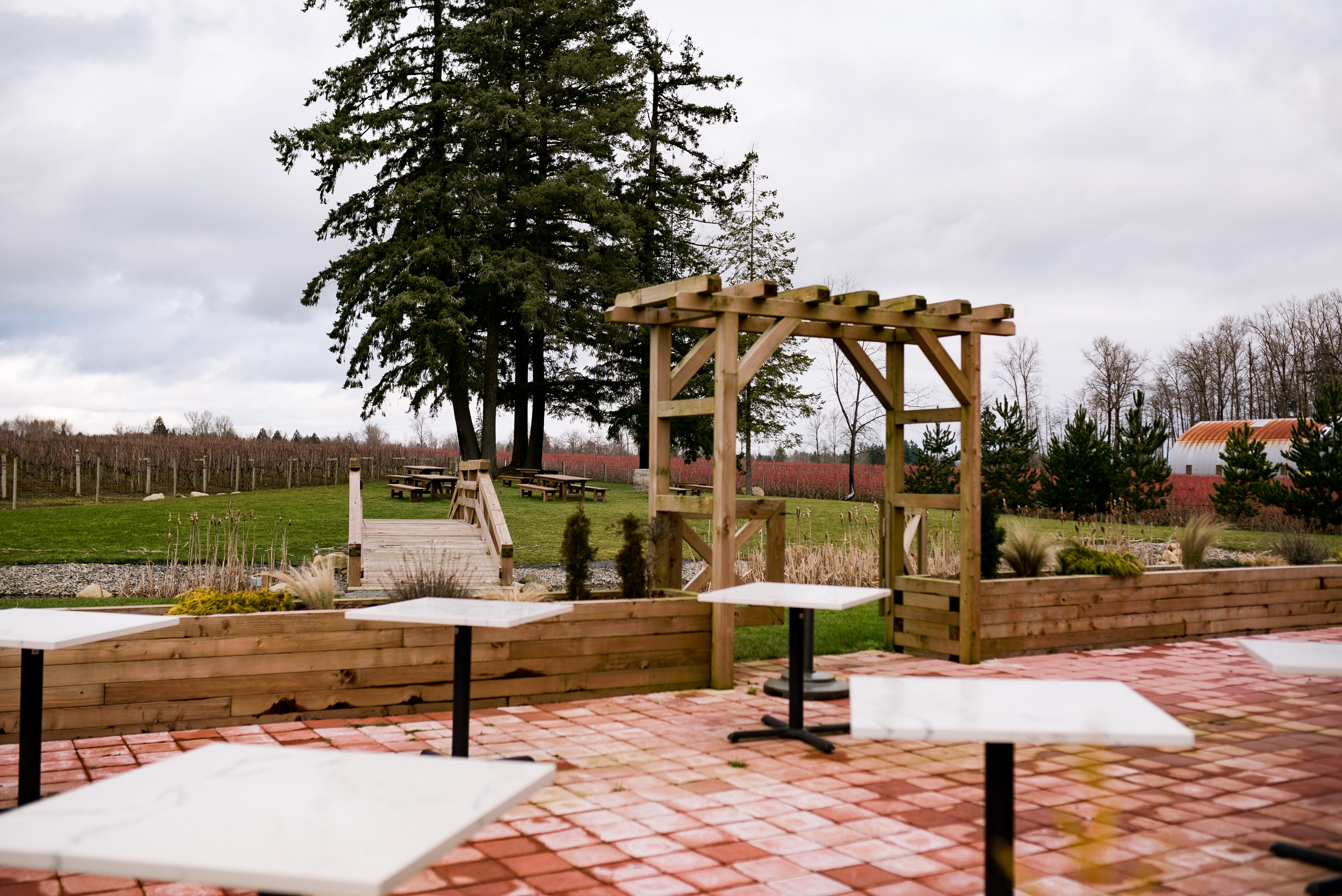 My wedding photographer wheels stated turning, and I knew I had to explore the venue more. They have a beautiful wedding ceremony space just over a short bridge, with their white wine grapes as your backdrop. A brick patio to host your cocktail our, that flows into their tasting room, so your guests can try the wines prior to your reception. My favourite part is that they open up the garage doors to offer easy flow from indoor to out.
